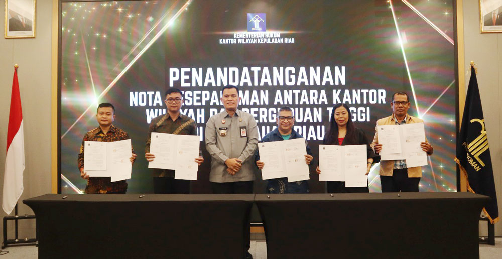 BATAM (BP) – Kantor Wilayah Kementerian Hukum (Kemenkum) Kepulauan Riau memperkuat pengelolaan kekayaan intelektual (KI) melalui kerja sama dengan sejumlah perguruan tinggi di daerah tersebut. Langkah ini diwujudkan lewat penandatanganan nota kesepahaman (MoU) dalam kegiatan bertema penguatan branding wilayah berbasis KI.