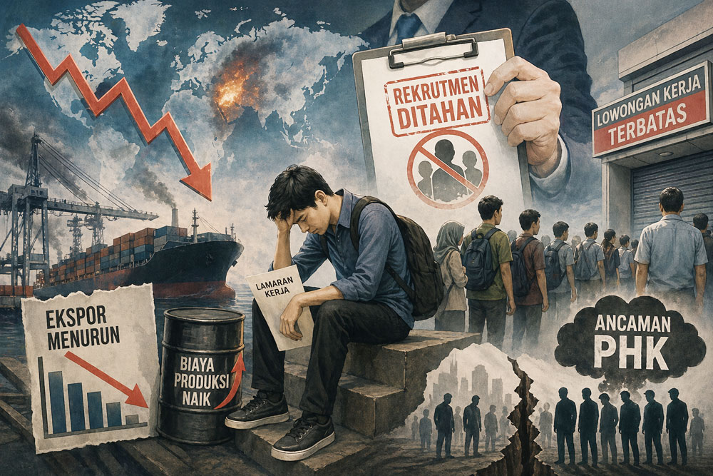 Ketika biaya hidup perlahan naik akibat tekanan global, dunia usaha justru berada dalam posisi menahan diri. Perlambatan ekonomi internasional, penurunan kinerja ekspor, serta sikap wait and see pelaku industri membuat rekrutmen tenaga kerja kian terbatas.
