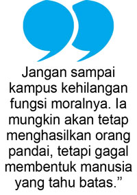 Sikap paling sehat terhadap kasus tersebut bukanlah buru-buru memvonis, tetapi juga bukan menenangkannya dengan kalimat, ’’Ah, itu cuma bercanda.’’ Justru di sinilah kampus diuji. Kampus adalah ruang kebebasan berpikir, tetapi bukan ruang kebebasan merendahkan orang lain.