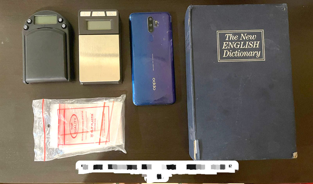 Petugas akhirnya mengamankan PPA di Perumahan Gladiola, Kecamatan Tebing. Meski tidak ditemukan narkotika saat penangkapan, polisi menyita barang bukti berupa dua timbangan digital dan plastik bening kosong yang disembunyikan dalam kotak buku bertuliskan The New English Dictionary.