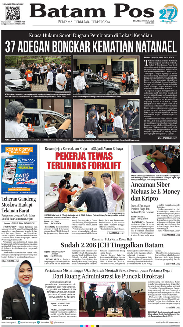 Silakan berlangganan untuk bisa membaca keseluruhan berita di Harian Batam Pos. ﹢ Berlangganan Baca Juga WhatsAppTelegram 28 April 2026 28 April 2026 Buka konten iniDengan mendaftarkan diri Anda di Harian Batam Pos, Anda akan mendapatkan akses penuh ke seluruh konten.SubscribeKami tidak akan mengirimkan email yang tidak berkaitan dengan akun Anda.Saya setuju untuk memperoses data saya sesuai dengan Aturan Layanan yang disediakan.