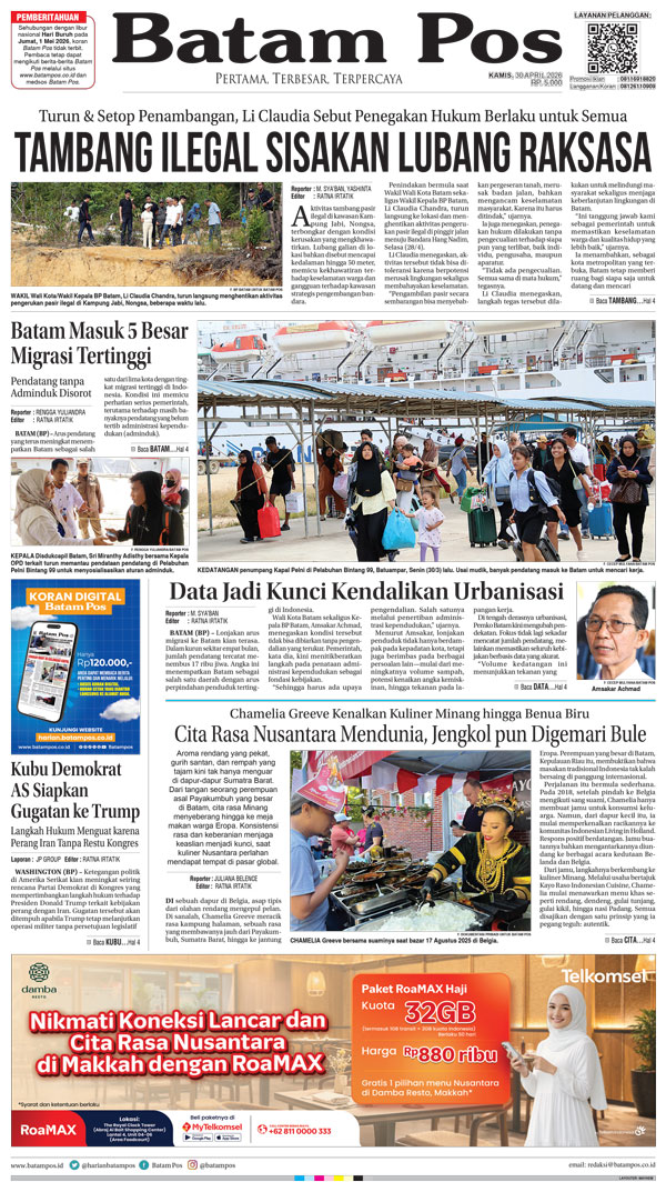 Silakan berlangganan untuk bisa membaca keseluruhan berita di Harian Batam Pos. ﹢ Berlangganan Baca Juga WhatsAppTelegram 30 April 2026 30 April 2026 Buka konten iniDengan mendaftarkan diri Anda di Harian Batam Pos, Anda akan mendapatkan akses penuh ke seluruh konten.SubscribeKami tidak akan mengirimkan email yang tidak berkaitan dengan akun Anda.Saya setuju untuk memperoses data saya sesuai dengan Aturan Layanan yang disediakan.
