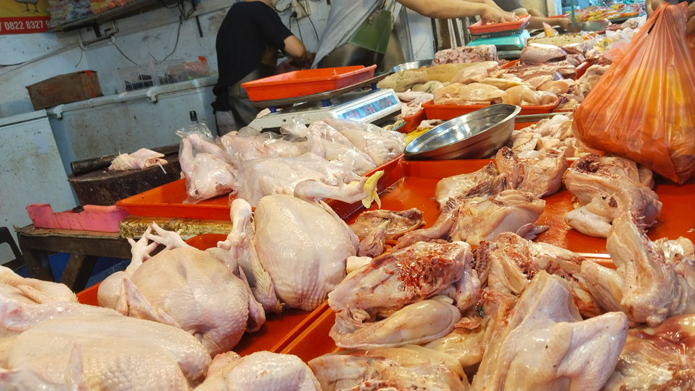 “Kalau ayam memang turun sedikit dibanding beberapa hari lalu. Pembeli mulai ramai, tapi belum terlalu tinggi,” ujar Siti.